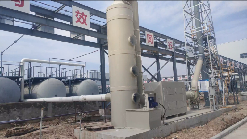 酸堿廢氣處理(噴淋(lín)塔)主要的運作方式是不斷酸霧廢氣(qì)由風管引入淨化塔(tǎ),經過填料層,廢(fèi)氣與氫氧化鈉吸收液進行(háng)氣液兩相(xiàng)充分接觸吸收中和反應,酸霧廢(fèi)氣經過淨(jìng)化後,再經除霧板脫水(shuǐ)除霧後由風機排入大氣。吸收液在塔底經水泵增(zēng)壓後(hòu)在塔頂噴淋(lín)而下,最後回流至塔(tǎ)底循環(huán)使用。淨化後的酸霧廢氣達到陝西省地方(fāng)排放標準的排放要求,低於國家排放(fàng)標準。